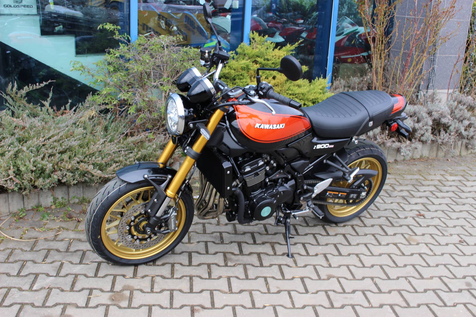 Komponenty odpružení a brzd jsou u nového modelu Z900RS srovnatelné s moderními supersportovními motocykly. Přední obrácená vidlice o průměru 41 mm s nastavitelným tlumením a zadní horizontální odpružení typu Back-link přispívají k pohodlné jízdě i k skvělým sportovním výkonům. Radiálně uložené přední brzdové třmeny poskytují lineární brzdný pocit s vynikající ovladatelností a jistotou.